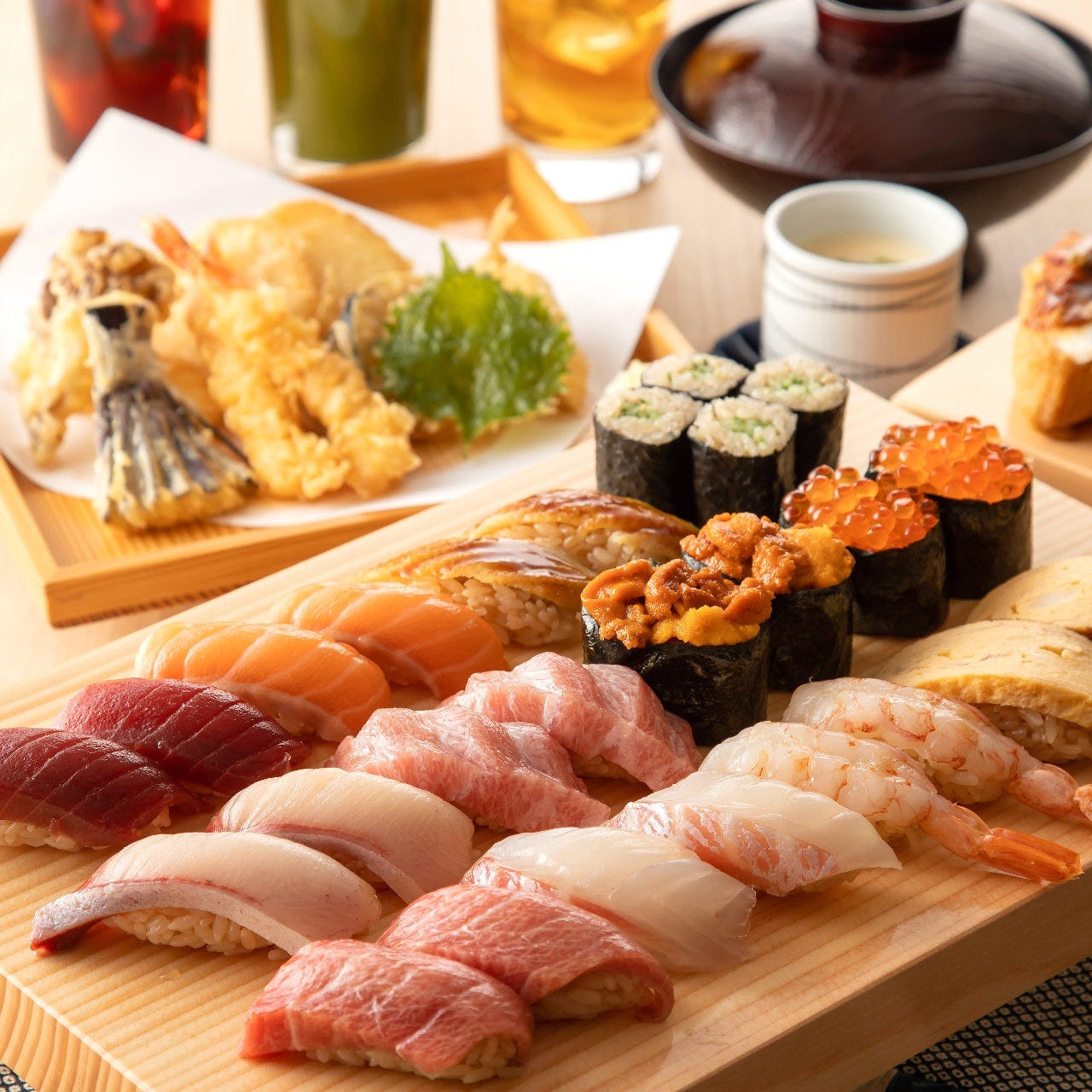 当店自慢の逸品や天ぷら、寿司、〆物、汁物、甘味などを心ゆくまでお召し上がりください。